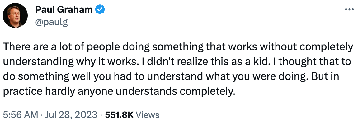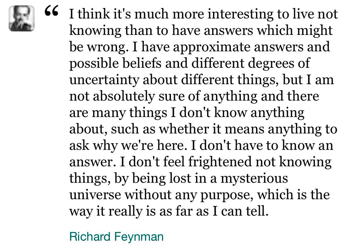 What are ways out of this conundrum? One direction is the Peter Thielian "what do you believe that no one else does?". But we also need to have epistemic humility as Feynman describes so well