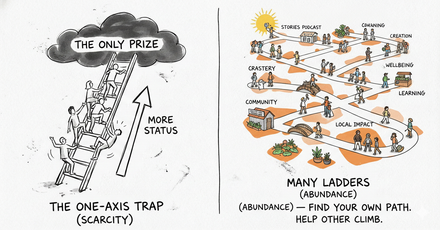 We argue about DEI, immigration, housing — always the symptoms. The underlying disease is that we’re all fighting over spots on a ladder that everyone agreed was the only ladder worth climbing. And nobody wants to say that out loud, because then you’d have to ask: why is there only one ladder?