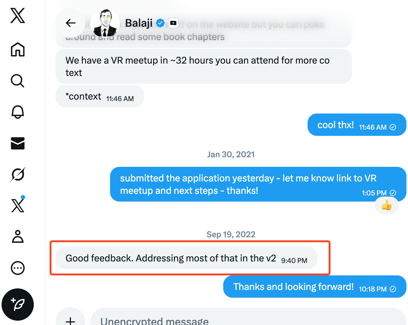 To his credit, Balaji reached out after the review. “Good feedback,” he wrote. “Addressing most of that in the v2.”