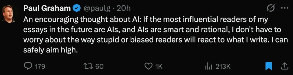 Set aside the PG of it all and notice what he’s actually saying: the audience is expanding to include agents, and that changes what’s worth making.
